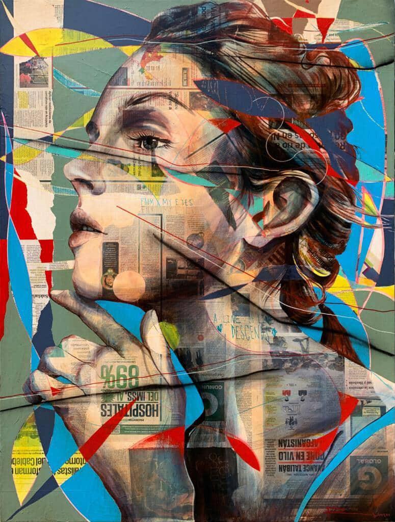 Through a deconstructive exercise of form, he generates portraits and artificial hybrid figures, which cast psychic, social and philosophical features that materialize in his paintings, reflecting on themes such as; Contemporary portraiture, identity and social and urban space.