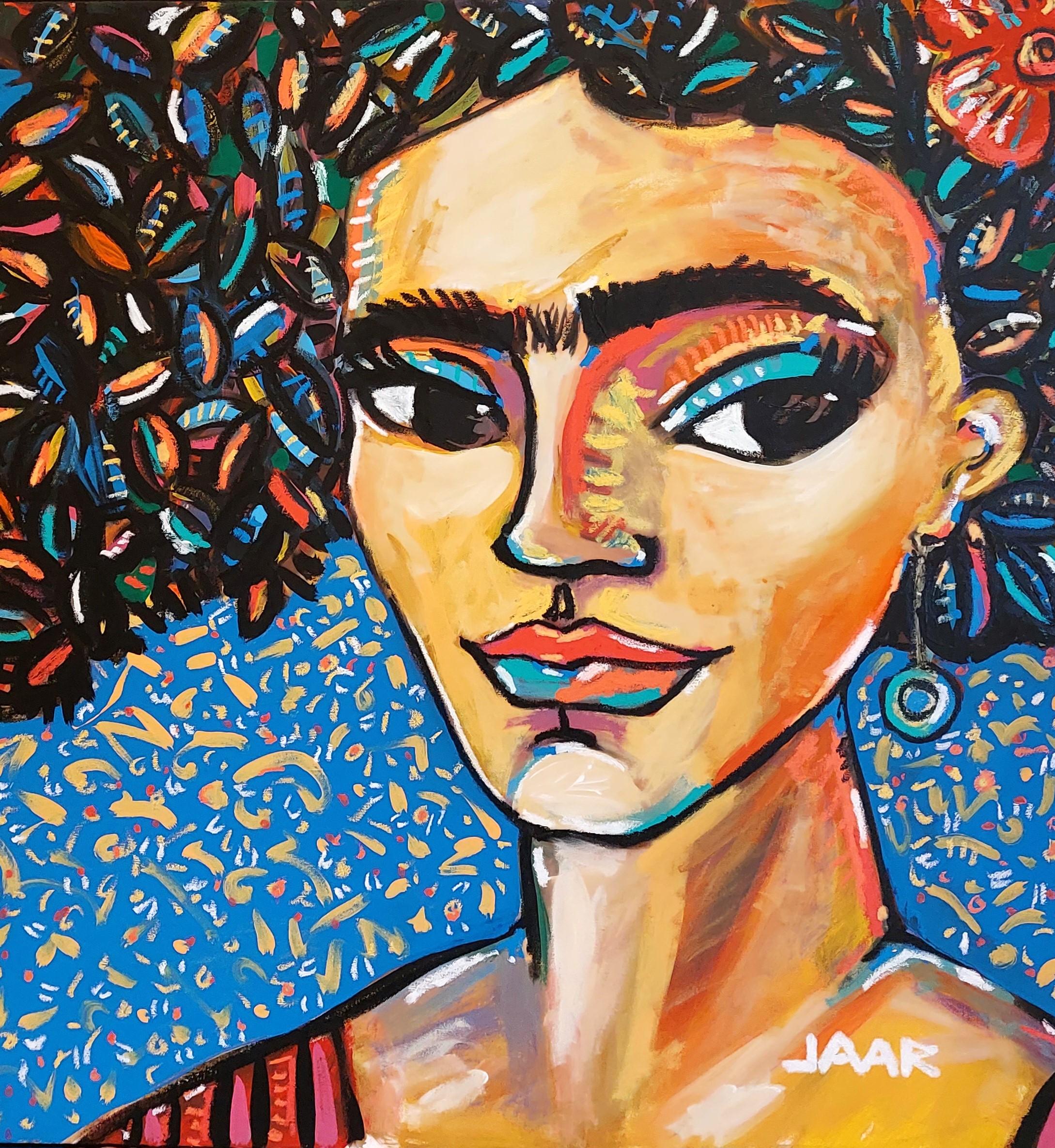 Su obra, llena de líneas firmes, colores vibrantes y mucha alegría en cada forma, es un reflejo de su pasión por el arte y su entendimiento histórico.