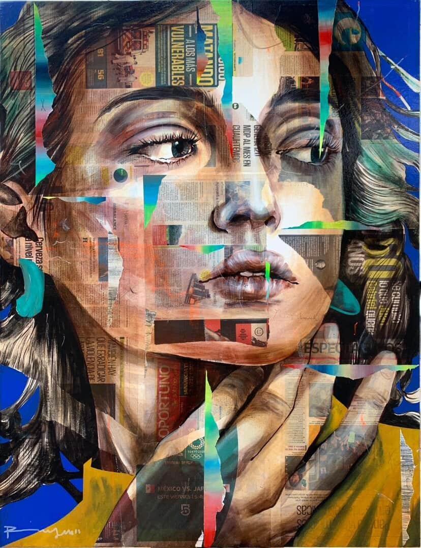 Su trabajo utiliza el valor simbólico y visual de carteles y libros populares impresos, al igual que periódicos como materia prima para resignificar y reconfigurar su contenido, Por medio de un ejercicio deconstructivo de la forma genera retratos y figuras híbridas artificiales, que arrojan rasgos, psíquicos, sociales y filosóficos que se materializan en sus pinturas, reflexionando entorno a temas como; El retrato contemporáneo, identidad y el espacio social y urbano